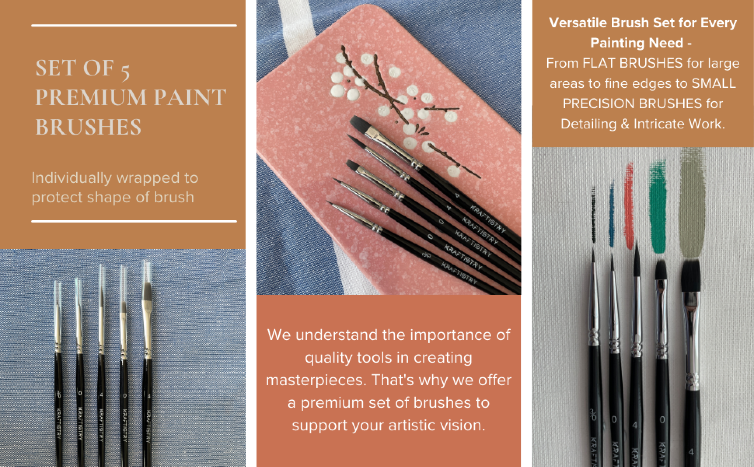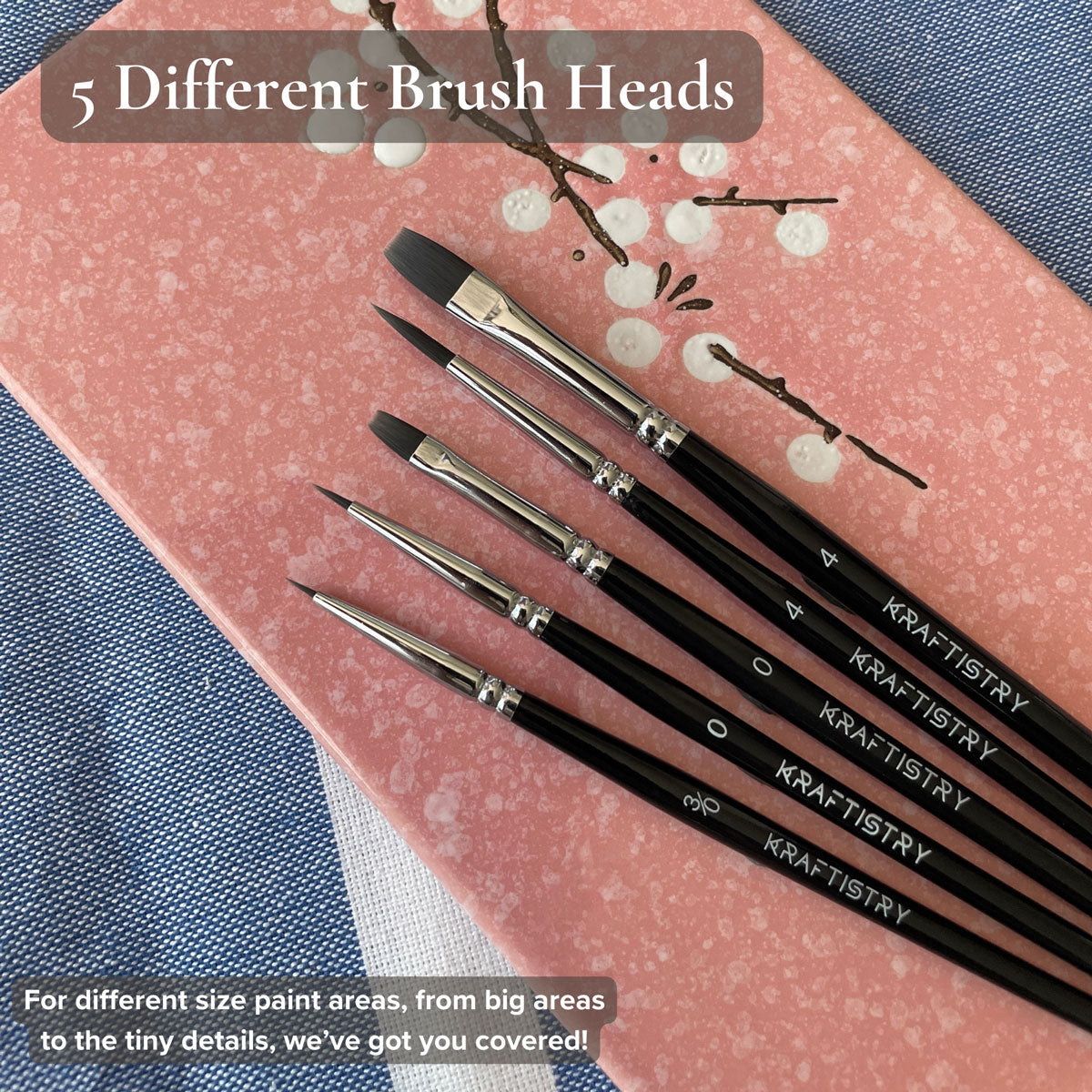 - 5 premium painting brushes of different sizes