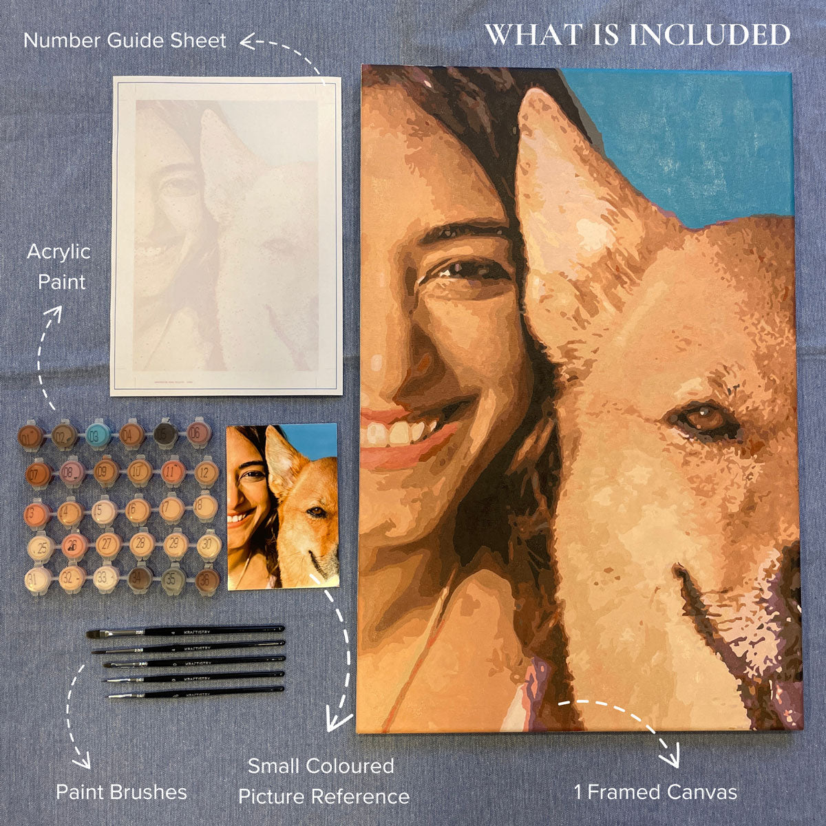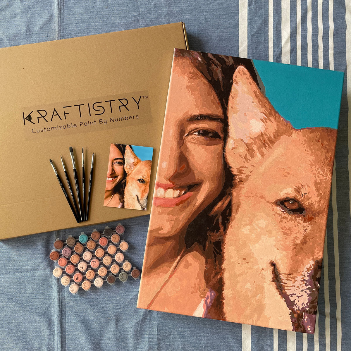 Get ready to add a splash of personality to your walls with Kraftistry's customizable paint by numbers kits! Say goodbye to boring art and hello to a canvas that's as unique as you are. Whether you want to immortalize your fur baby's majestic pose or recreate that epic family vacation snapshot, our kits turn painting into a fun-filled journey down memory lane.